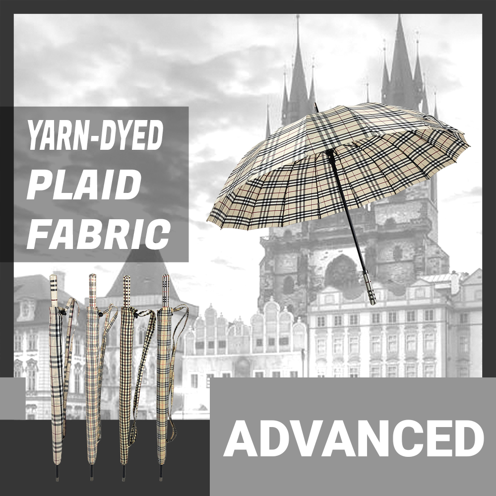 1、這款直骨傘是一款極具英倫風格的傘具,其傘面采用經典的英倫風格格紋花紋,透露出低調奢華的氣質。它采用直桿皮質傘桿,質感細膩,堅固耐用,不易折損。
